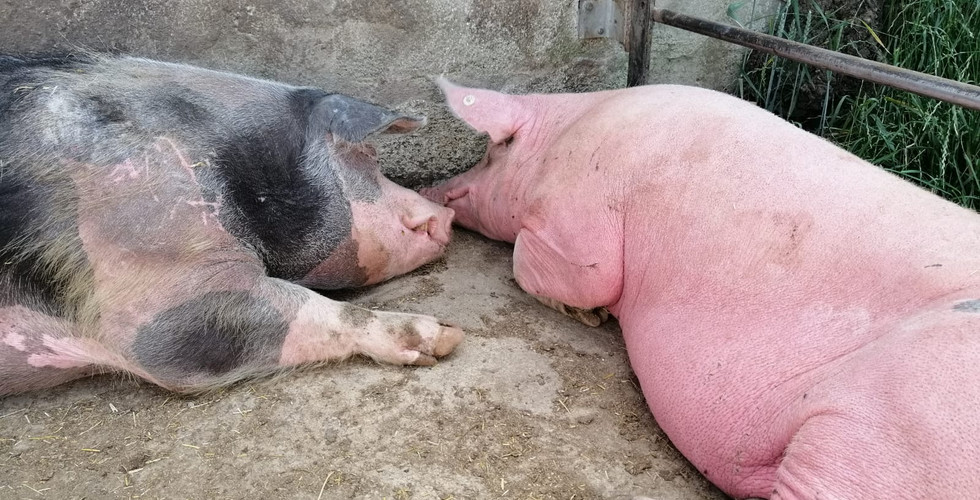 Er lebte als einziger Zuchteber weitestgehend allein auf einem Hof an der B2. Außer bei der regelmäßigen Begegnung mit den Muttersauen zur zwangsweisen Besamung schien er keinerlei direkten Kontakt zu anderen Schweinen gehabt zu haben. Erika, eine liebe Unterstützerin und gemeinsam mit ihren Schwestern seine Retterin, begegnete Heiner täglich auf ihren Arbeitsweg. Oft stand er hinter dem hohen Eisentor mit einem freundlichen und neugierigen Blick. Eines morgens begegnete Erika aber vor dem Tor einem Transporter, der die ausgemusterten Muttersauen zum Schlachthof abtransportieren sollte. Würde Heiner einer der Nächsten sein? Ja, nun hatte er als Zuchteber nach 6 Jahren ausgedient, ist zu schwer geworden und der neue, zierliche und junge Deckeber stand schon in der Bucht. Nach den zahlreichen, dennoch sehr kurzen Begegnungen mit Heiner, meist nur eine kurze Begegnung durch das Glas der Autoscheiben, aber der liebevolle Blick von Heiner, wusste Sie, Heiner dieses Schicksal unbedingt ersparen zu wollen. Sie war drauf und dran ihn freizukaufen ohne jegliche Kontakte zu einem Lebenshof. Sie ist mit Heiner im Gepäck bei Rüsselheim e.V. gelandet, löste ihn mit der Unterstützung ihrer Schwestern aus und sammelte Spendengelder für seine Kastration.